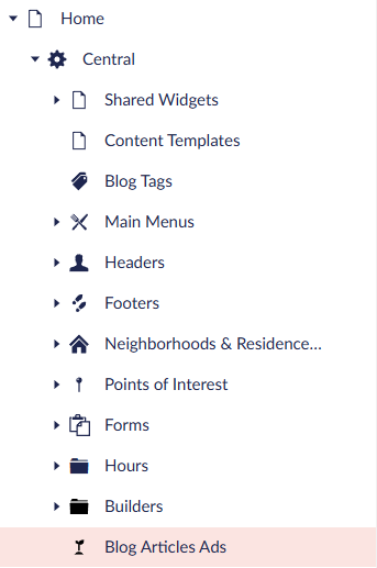 - Select your newly uploaded banner ad under Home>Central>Blog Article Ads