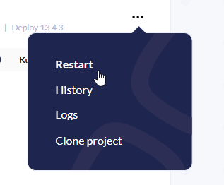 < All Topics Main General How to Restart an Umbraco Website Print How to Restart an Umbraco Website PostedFebruary 4, 2026 UpdatedFebruary 4, 2026 ByThao Tran Go to https://umbraco.io/ to log into Umbraco Cloud Click on the website you want to restart Click on the three-dot (…) menu of the environment you want to restart Click “Restart”
