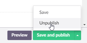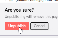 - Click ‘Unpublish’ and then ‘Unpublish’ again when it asks you to confirm